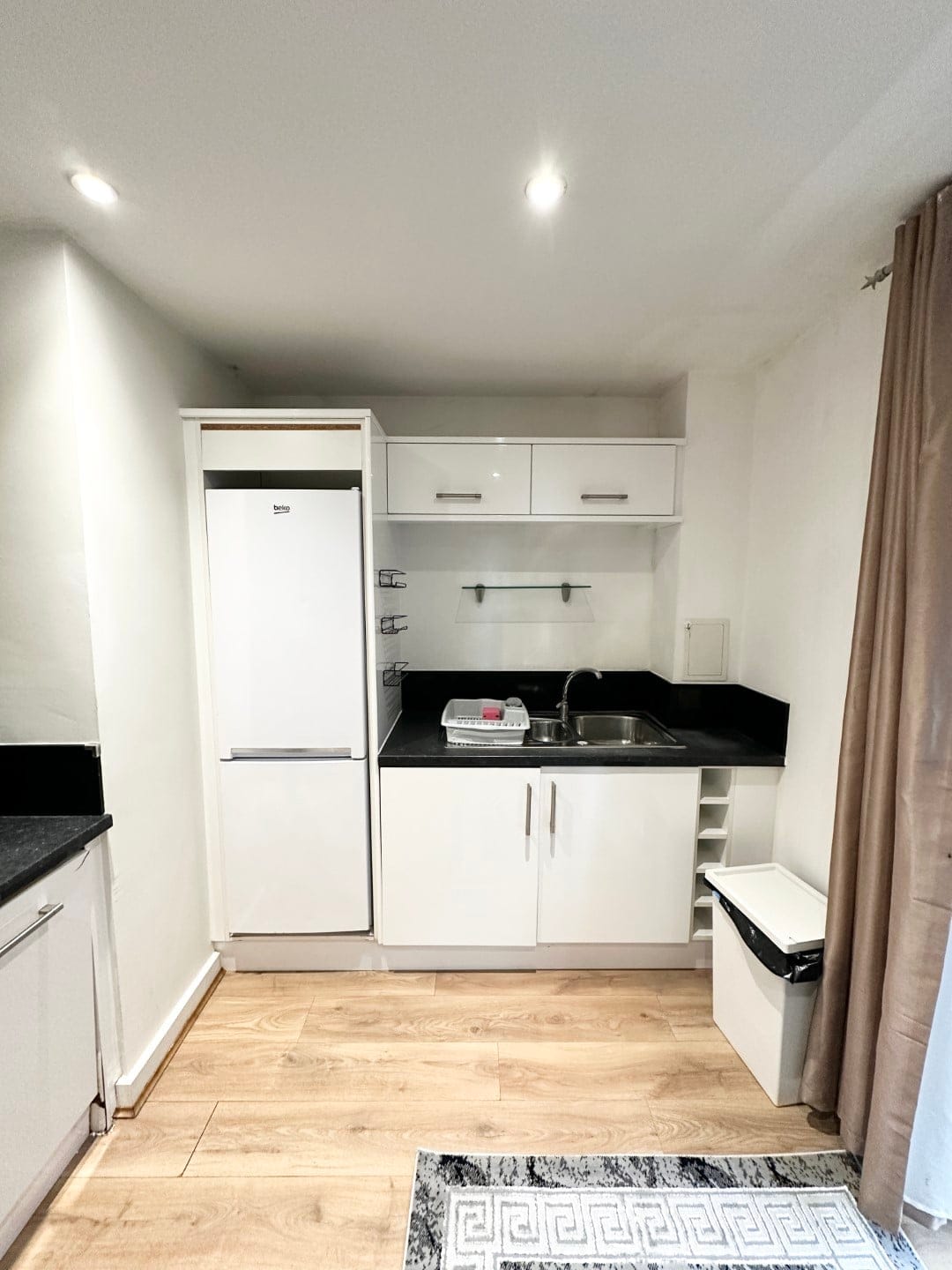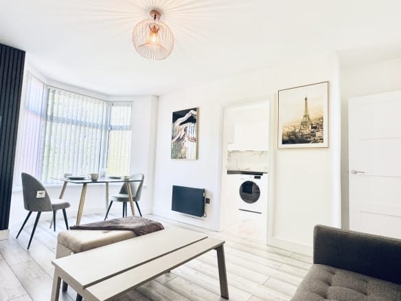 The apartment comprises a welcoming entrance hallway leading into a bright and spacious open-plan living kitchen area. The living space is well-proportioned, finished with modern flooring and neutral décor throughout, creating a light and contemporary feel.